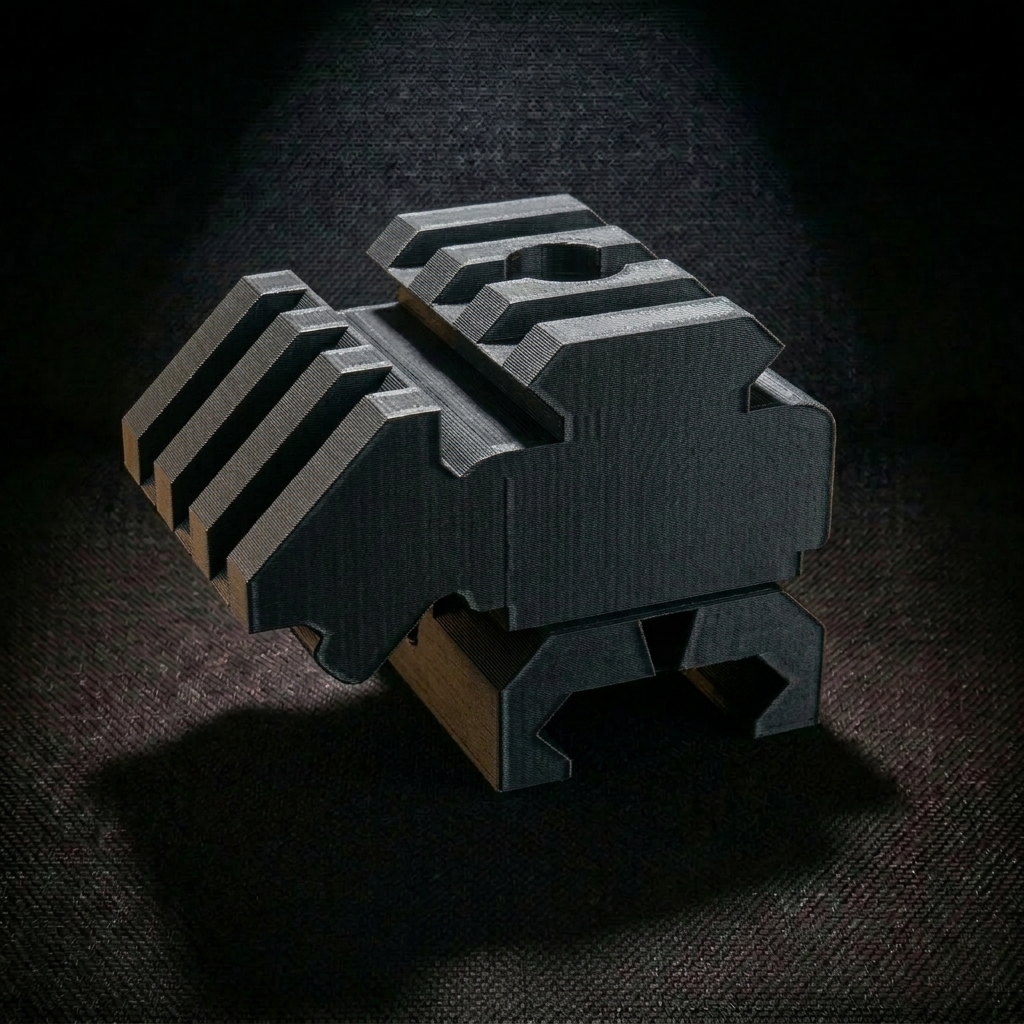 Picatinny sín elosztó ami egy 45 fokos szögben döntött sínnel egészíti ki a meglévőt